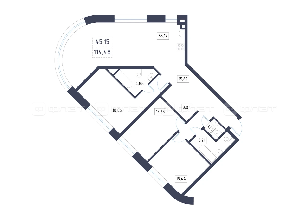 - 114.48/45.15/38.17 м²